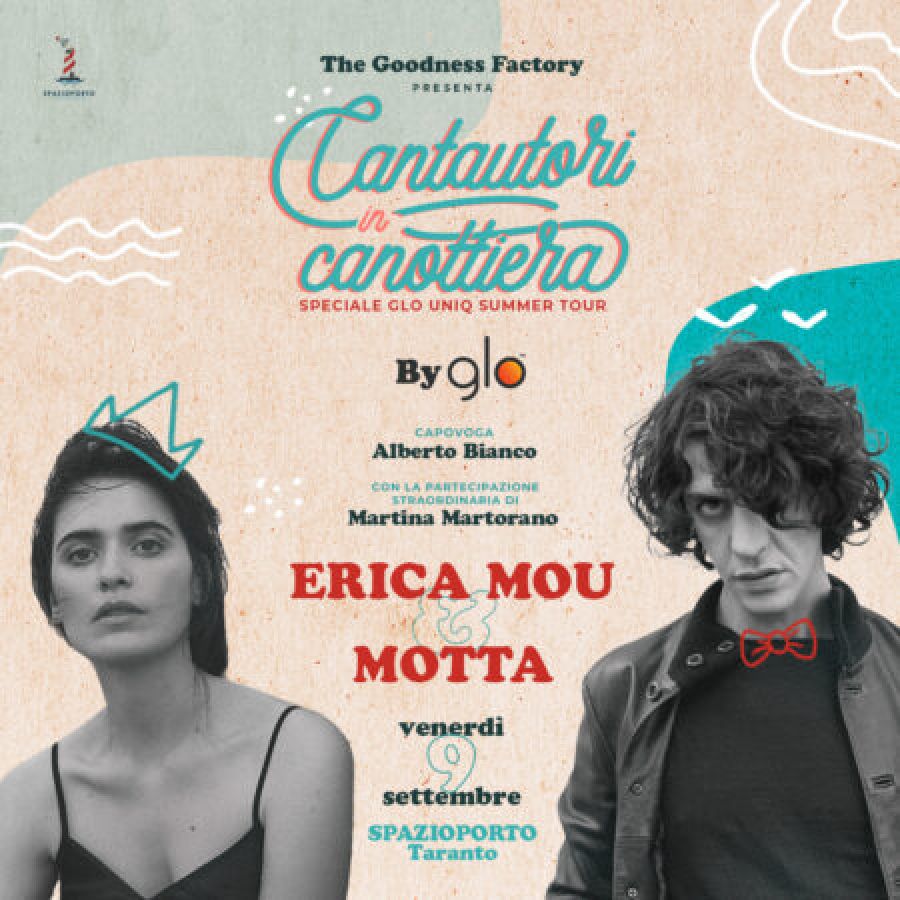 Per questa prima puntata che si terrà Venerdì 9 Settembre alle ore 21,30 nello spazio di Via Niceforo Foca 28, gli ospiti che si racconteranno ed incontreranno i propri fans sono due grandi esponenti della nuova musica d’autore: ERICA MOU e MOTTA con la conduzione del cantautore Alberto Bianco e la brillante Martina Martorano, già presentatrice dell’Uno Maggio di Taranto di quest’anno.