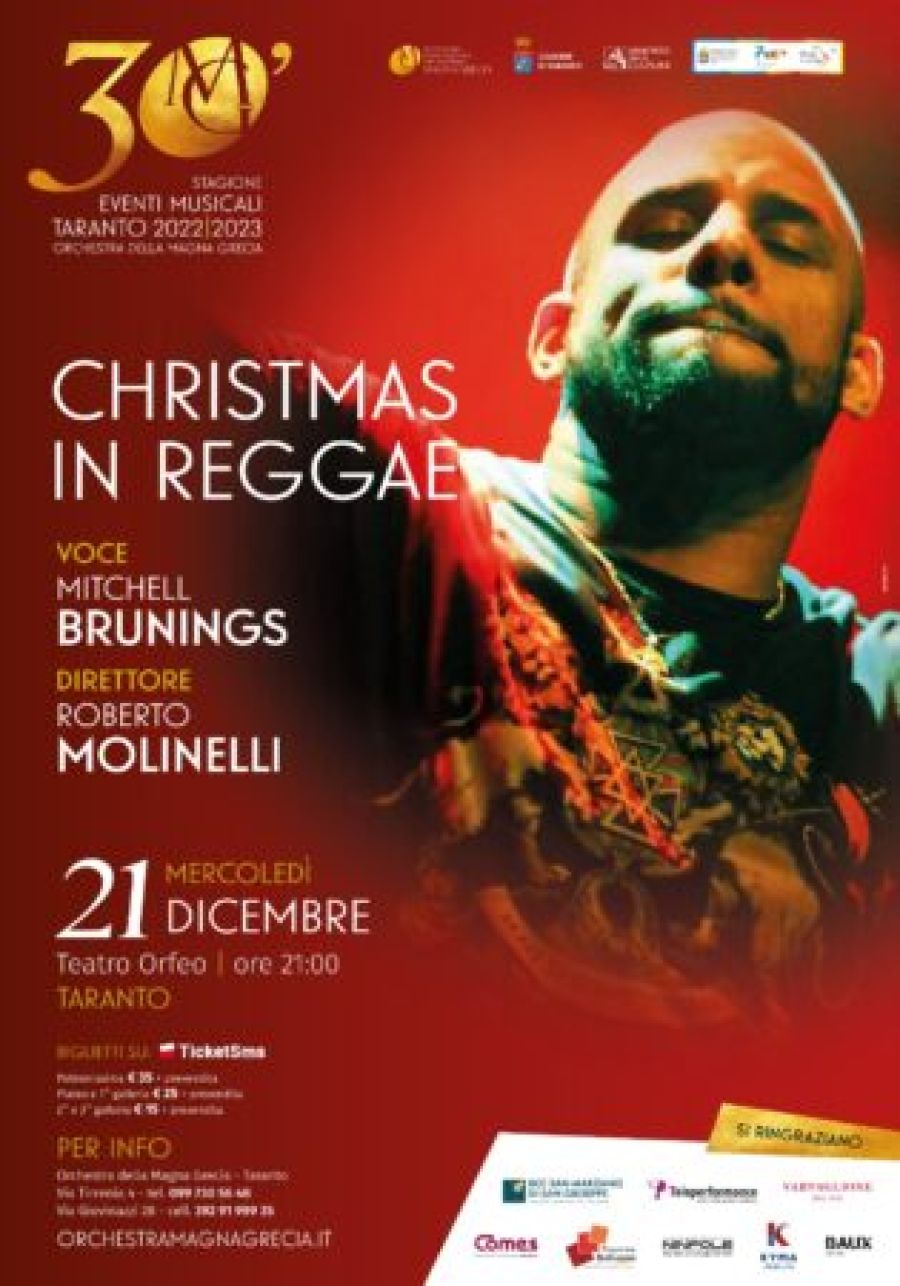 Da “Last Christmas” a “Jingle bells”, proseguendo con “The Christmas song”. Per proseguire con un omaggio a Gregory Porter e, naturalmente, a Bob Marley. Il tutto eseguito dall’Orchestra della Magna Grecia diretta dal Maestro Roberto Molinelli e un interprete d’eccezione: Mitchell Brunings. Una grande orchestra, una voce straordinaria, una direzione sapiente, solo alcuni degli elementi che faranno di “Christmas in reggae”, in programma mercoledì 21 dicembre alle 21.00 al teatro Orfeo di Taranto, uno degli spettacoli più attesi della rassegna.