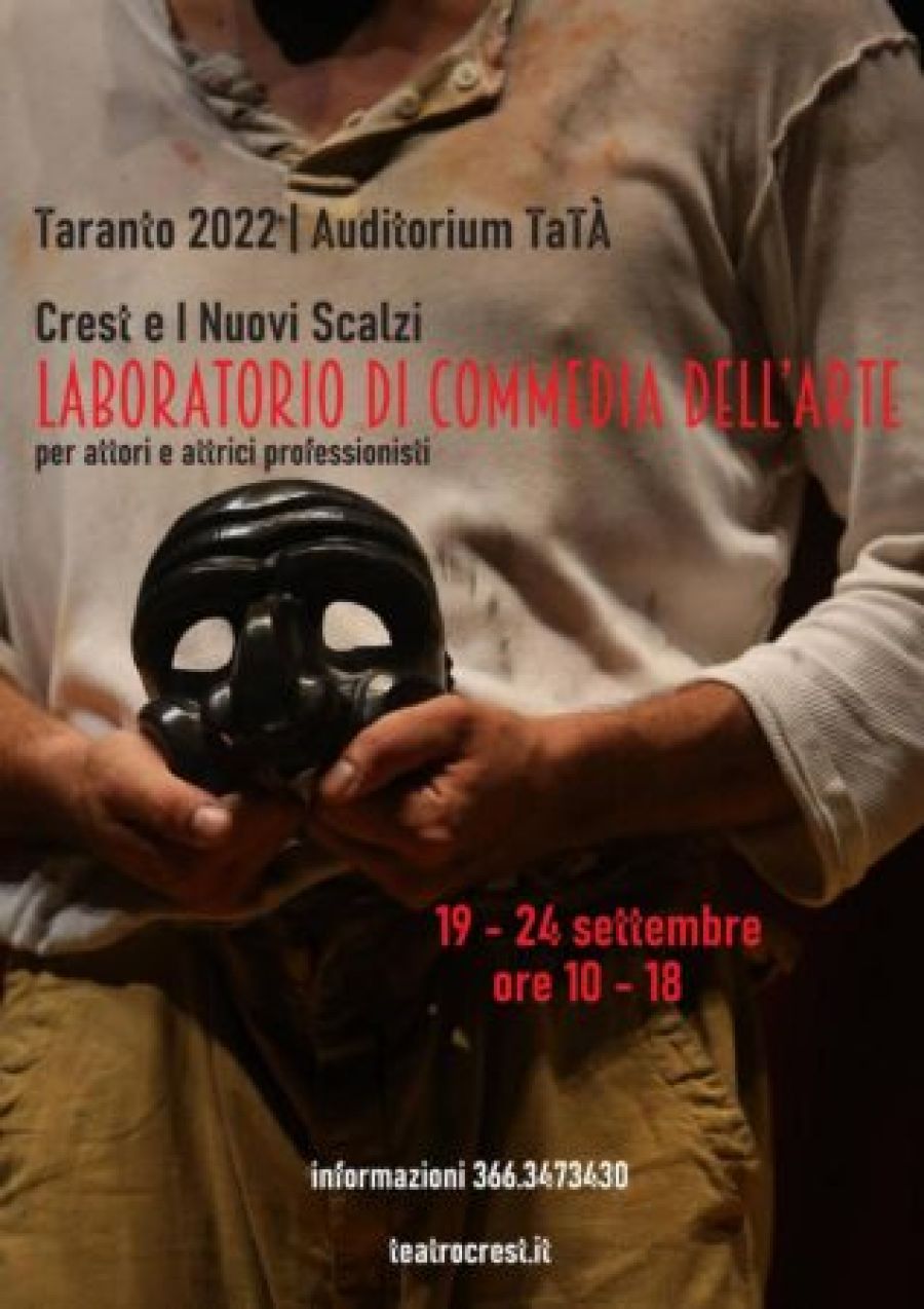 Laboratorio di Commedia dell’Arte, un corso intensivo per attori e attrici professionisti promosso dalle compagnie Crest e I Nuovi Scalzi. “Un modo diretto per conoscere, attraverso la pratica scenica, nuovi professionisti da inserire nella prossima produzione”, spiegano dal Crest.