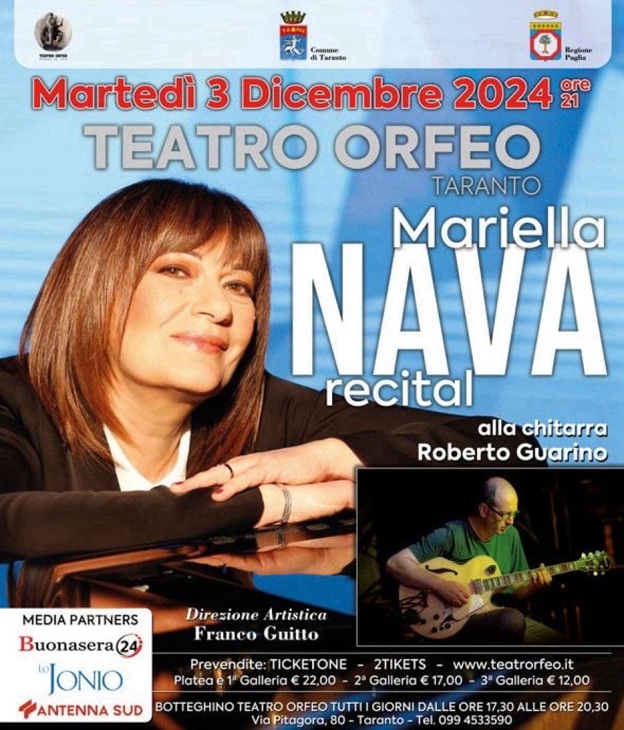 Domenica 9 marzo alle 19.00, all’Orfeo di Taranto, concerto di Mariella Nava. La città di una delle cantautrici italiane più amate, dunque, si prepara ad accogliere a braccia aperte uno dei suoi grandi talenti artistici espressi in questi anni.