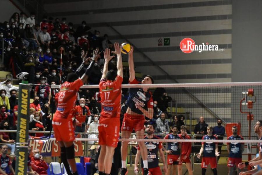 Al PalaMazzola, la squadra di coach Blengini si impone per 3-0 sulla formazione ionica (26-28, 19-25, 23-25) trascinata dai 16 punti di Ivan Zaytsev e da una grande prova di Yant.
