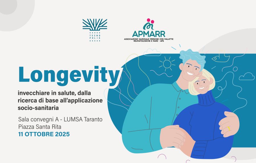 Promosso da TECNOPOLIS e APMARR (Associazione nazionale Persone con Malattie Remautologiche e Rare Aps), l’appuntamento gode del patrocinio di Regione Puglia, ASL Taranto, Comune di Taranto, CSV Taranto, Ordine dei Biologi Puglia e Basilicata, CETMA DIHSME – European Digital Innovation Hub, Ricerca Globale – Istituto Ricerche Cliniche e Biomediche, Italian Longevity League, Ordine dei Medici Chirurghi e degli Odontoiatri della provincia di Taranto e LUMSA.