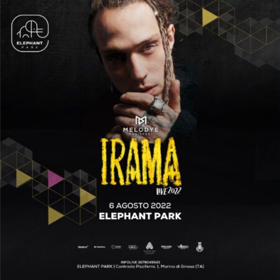 Live di Irama, impegnato con una tappa del suo tour “Live 2022” all’interno del Melodye Music Fest, e poi il format nazionale di musica dance e reggaeton “Caliente”, oltre al set commerciale dei dj resident. 6 agosto 2022, Elephant Park, cancelli 20.30; biglietti acquistabili qui: https://www.ticketsms.it/event/ZaarhkP0