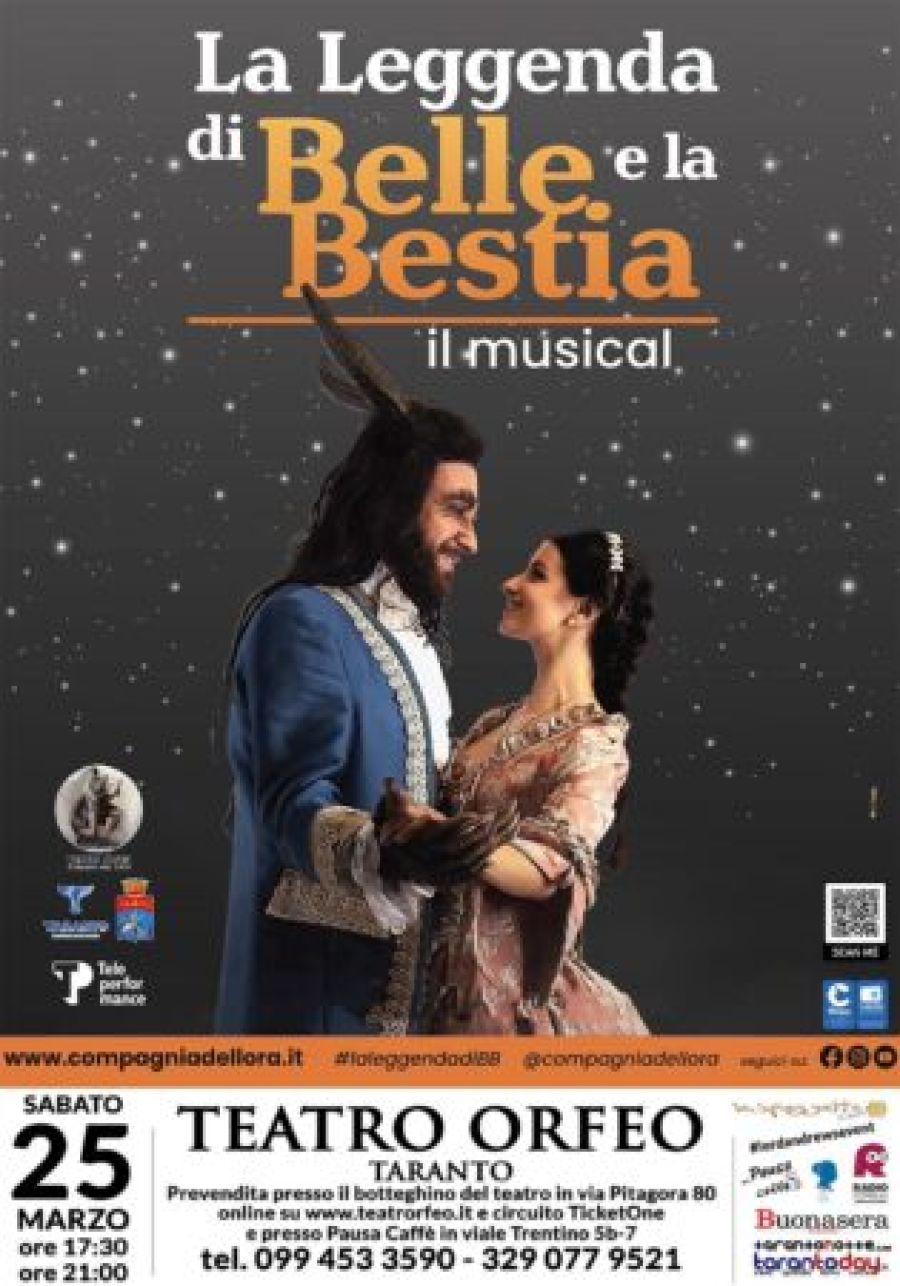 Doppio appuntamento questa sera al Teatro Orfeo di Taranto con lo spettacolo “La Leggenda di Belle e la Bestia”. Primo spettacolo alle ore 17.30; replica alle ore 21.