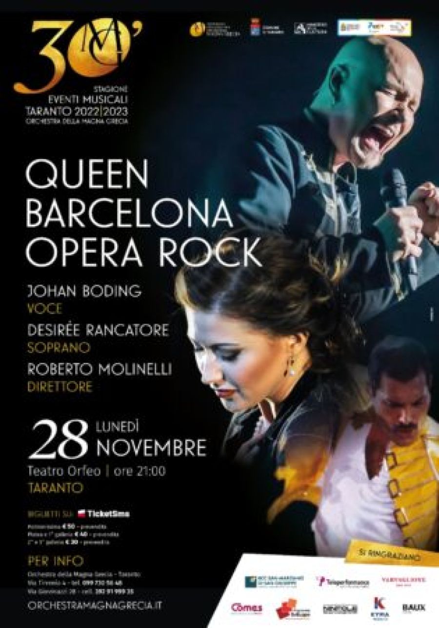 Lunedì 28 novembre alle 21.00 al teatro Orfeo di Taranto, altro grande appuntamento con la Stagione Eventi musicali 2022-2023: “Queen – Barcelona Opera Rock”.
