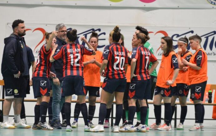 Italcave Real Statte esce dalla corsa al tricolore. Le ioniche cadono con quattro gol di scarto. La Lazio si impone 6-2 e avanza in semifinale. Il campionato di Margarito e compagne finisce ai quarti (foto diffusa dall’ufficio stampa della società rossoblu).