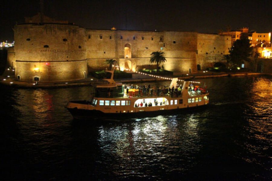 Il pittoresco corteo marinaresco proseguirà costeggiando il Lungomare Vittorio Emanuele II, la “Ringhiera” della Città vecchia, fino a imboccare e percorrere il Canale Navigabile, un momento in cui dagli spalti del Castello Aragonese ci sarà una pioggia di fuochi artificiali mentre tutti i natanti suonano le sirene”.